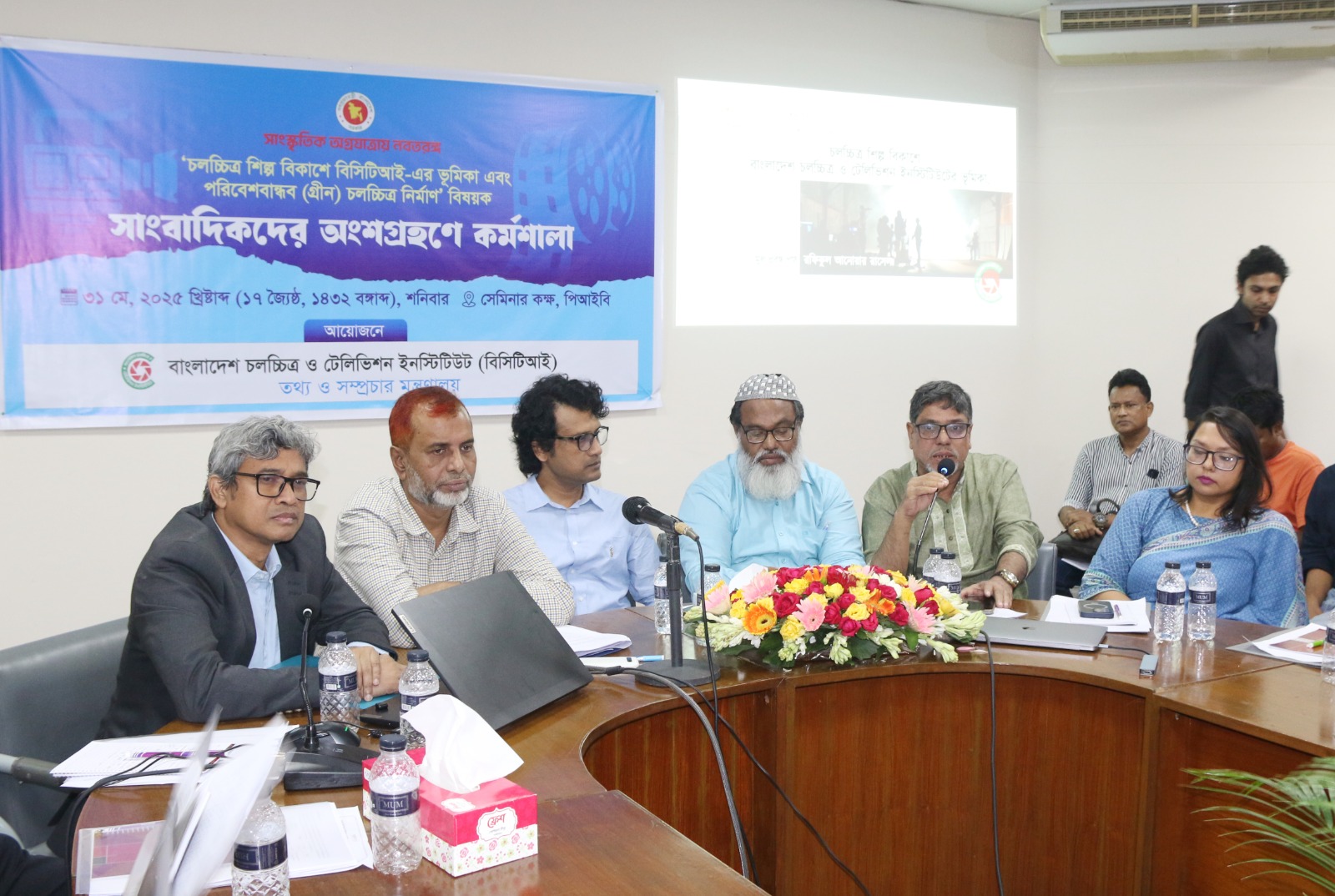 বাংলাদেশ চলচ্চিত্র ও টেলিভিশন ইনস্টিটিউট (বিসিটিআই) এর আয়োজনে সাংবাদিকদের অংশগ্রহণে "চলচ্চিত্র শিল্প বিকাশে বিসিটিআই এর ভূমিকা এবং পরিবেশবান্ধব (গ্রীন) চলচ্চিত্র নির্মাণ" বিষয়ক দিনব্যাপী কর্মশালা ৩১ মে ২০২৫ খ্রিস্টাব্দ, শনিবার, প্রেস ইনস্টিটিউট বাংলাদেশ এর সেমিনার কক্ষে অনুষ্ঠিত হয়েছে।